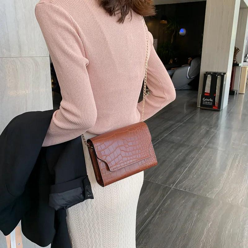 This crocodile shoulder bag is made of PU leather with a large capacity. Perfect for daily use.