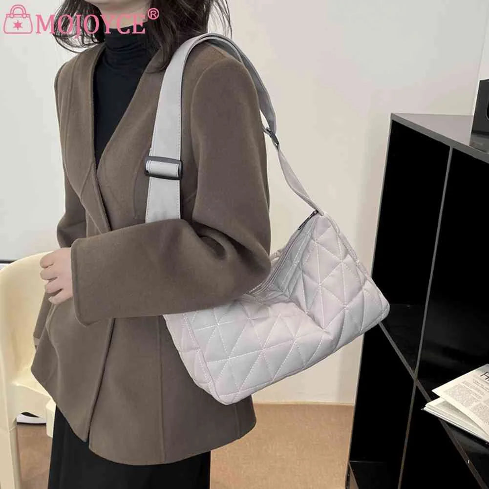 Crossbody Bag Cotton Padded Shoulder Quilted Rhombus Solid Wide Belt