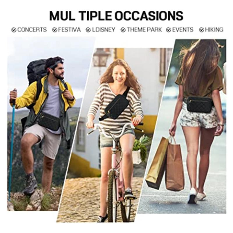 This stylish crossbody bag features a rhombus pattern design and multiple pockets for convenient storage. The adjustable belts allow for a comfortable fit, making it perfect for travel, cycling, and running.
