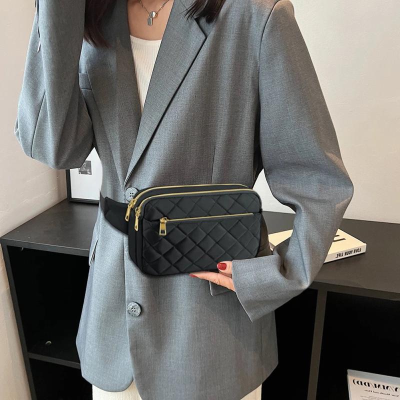 Crossbody Bag Multi-Pockets Rhombus Pattern Adjustable Belts Fanny Packs