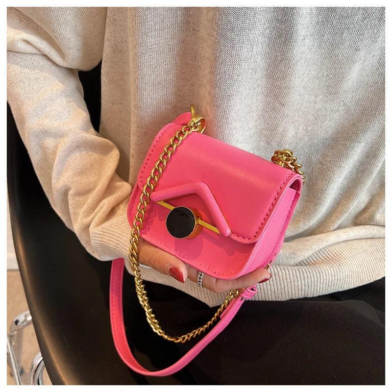 This adorable small square bag is perfect for girls on the go. It features a hand bill of lading design and can be worn as a shoulder or crossbody bag.