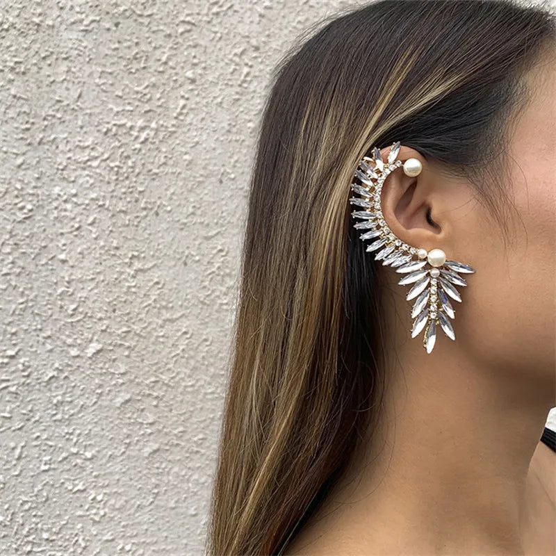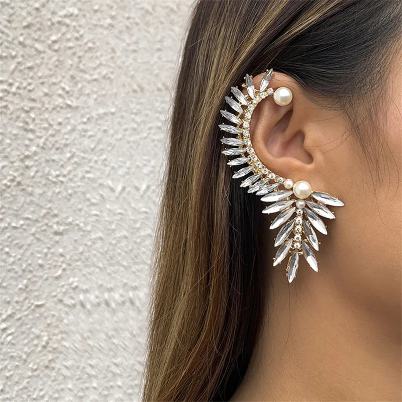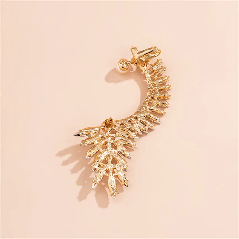 Crystal Pearl Set Auger Ears Hang Leaves Clip Earrings