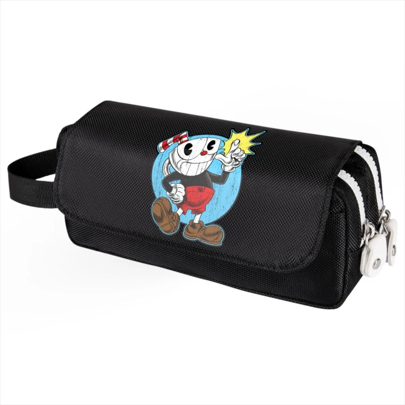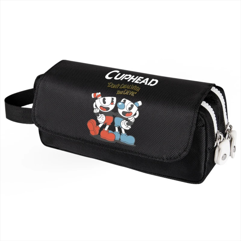 Keep your stationery organized on the go with this spacious Cuphead Mugman print pencil case. Perfect for students and travel.