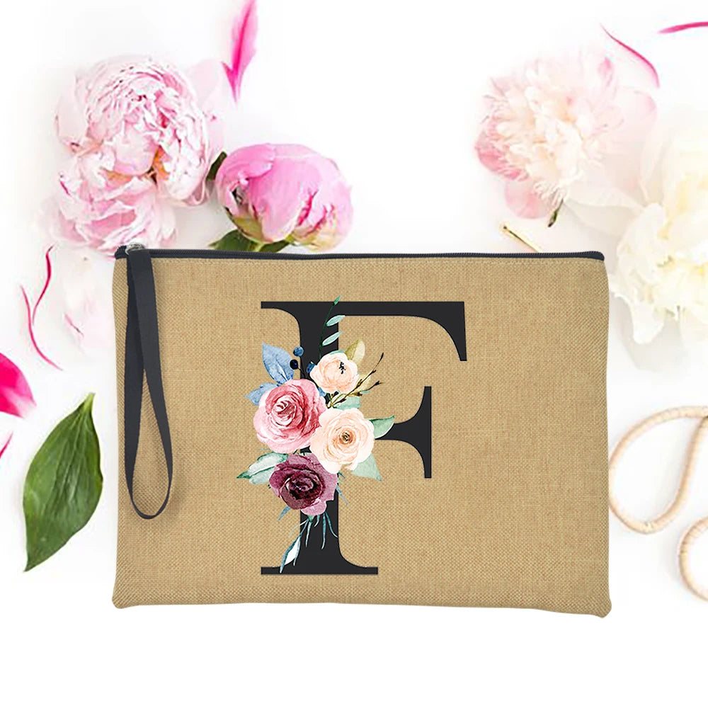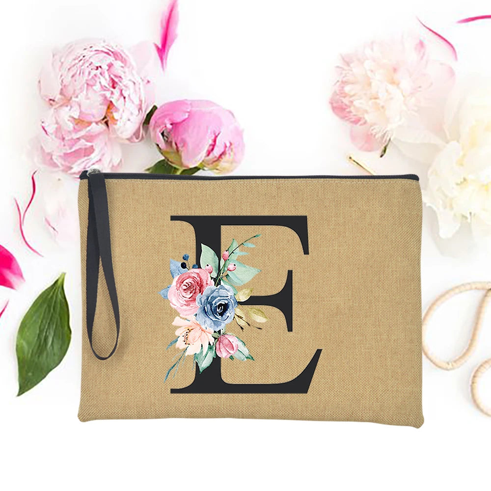 Get ready for summer with this personalized floral initial clutch bag. Perfect for holidays, weddings, and bachelorette parties, this organizer case makes a great bridesmaid gift.