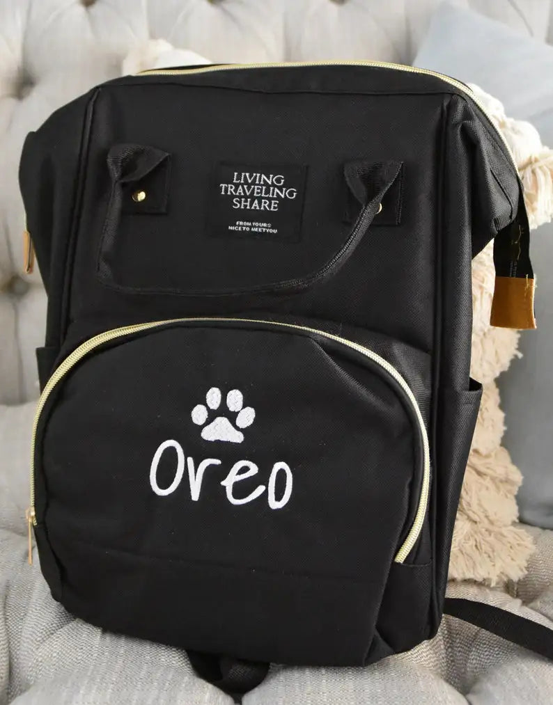 Carry your furry friend in style with this personalized service dog bag featuring custom embroidery. This pet bag is designed for comfort and convenience while showcasing your pet's name or initials.