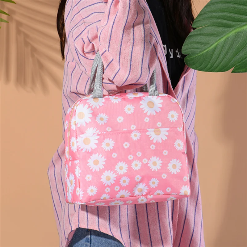 Daisy Pattern Lunch Box Bag Portable Zipper Waterproof Insulated Cooler Bag