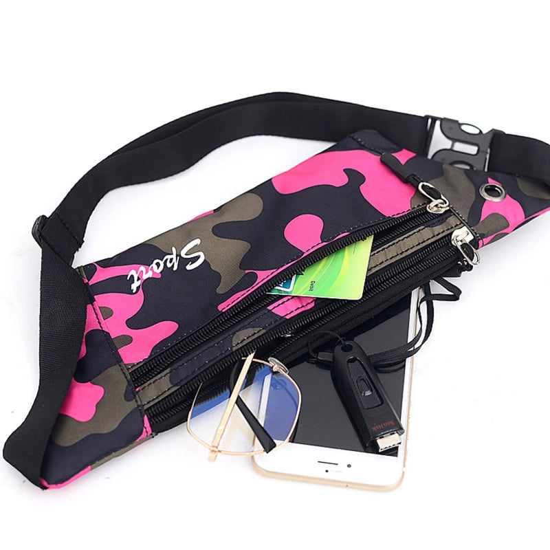 Stay stylish and hands-free with this camo bum bag made of durable canvas. Perfect for travel, running, and sports.
