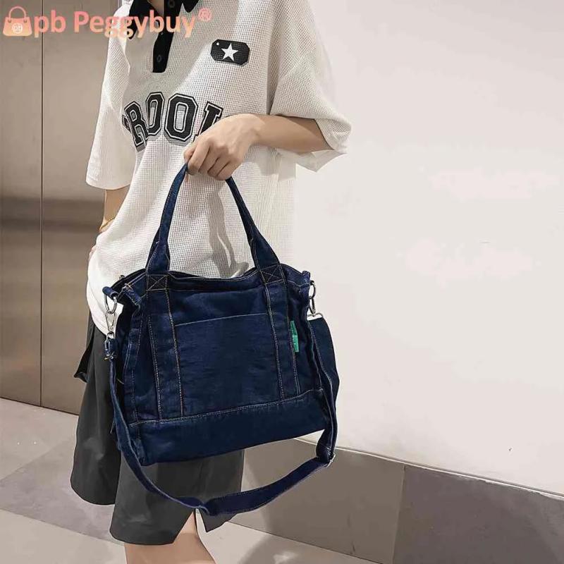 Denim Student Book Bag Large Capacity Multi-Pockets Port