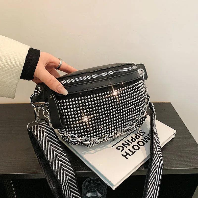 Diamond Leather Waist Belt Bag Ladies Fanny Pack Shoulder Crossbody Chest Bags