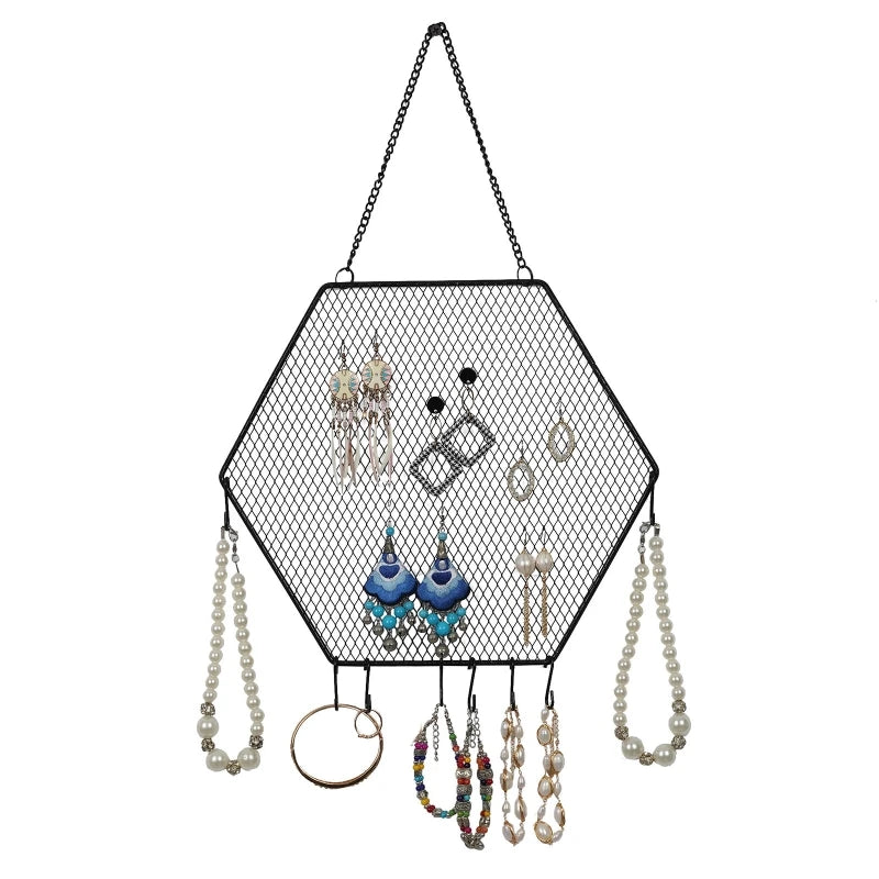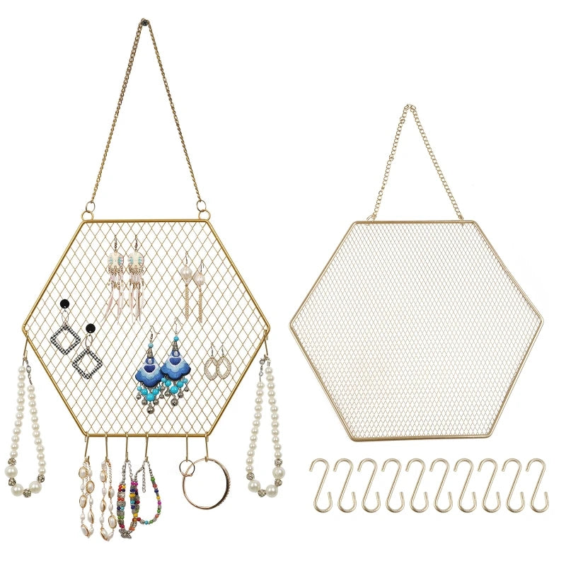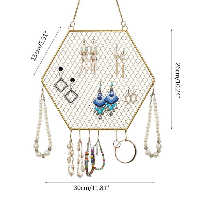Keep your earrings organized with this wall-mounted earring display holder. It's a stylish and convenient way to store and showcase your earrings.