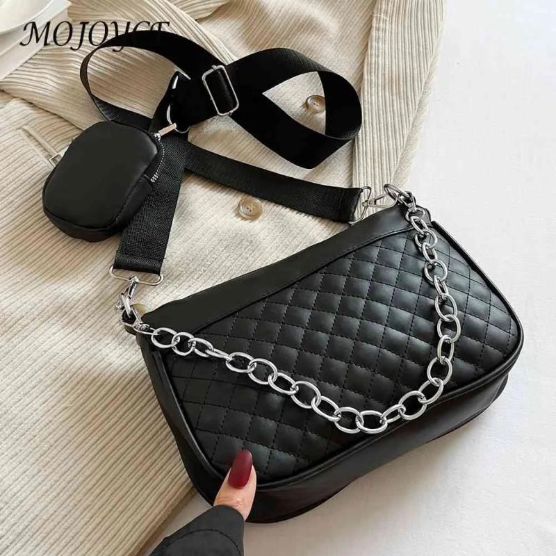 Description:Upgrade your style with this rhombic lattice messenger bag that comes with a small purse. Made of high-quality PU leather, it's perfect for weekend getaways or casual commutes.Features: Rhombic lattice design for a trendy look Comes with a small purse for added convenience Ideal for weekend vacations or casual outings...