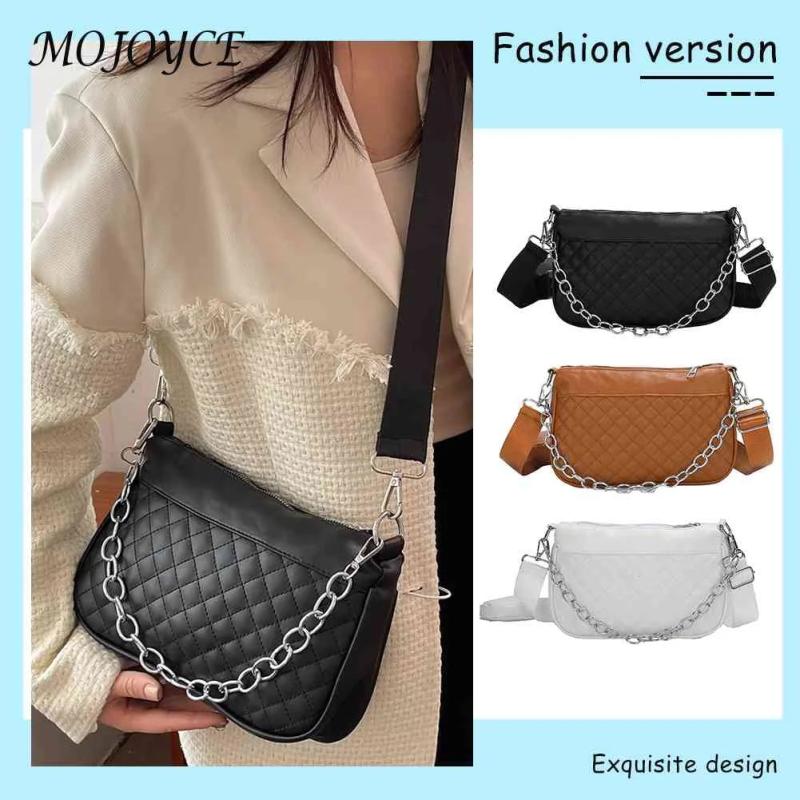 Upgrade your style with this rhombic lattice messenger bag that comes with a small purse. Made of high-quality PU leather, it's perfect for weekend getaways or casual commutes.