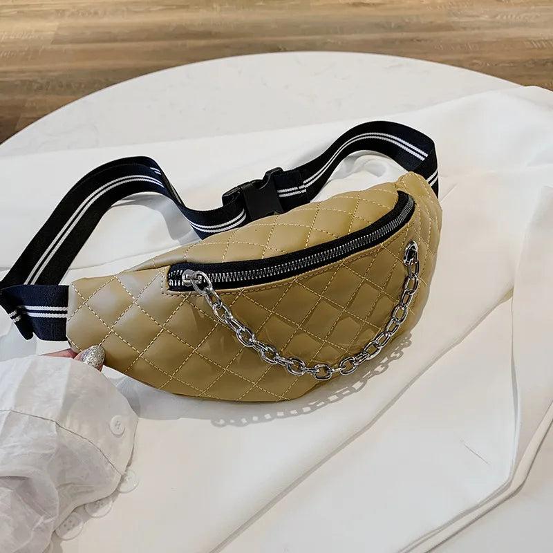 Description:Stay stylish and organized with this PU waist bag featuring solid embroidered thread design. Ideal for outdoor activities and sports.Features: Fashionable waist bag with chain strap Made of durable PU material Features embroidered thread and rhombic lattice design Perfect for carrying essentials during outdoor sports Adjustable strap for a comfortable...
