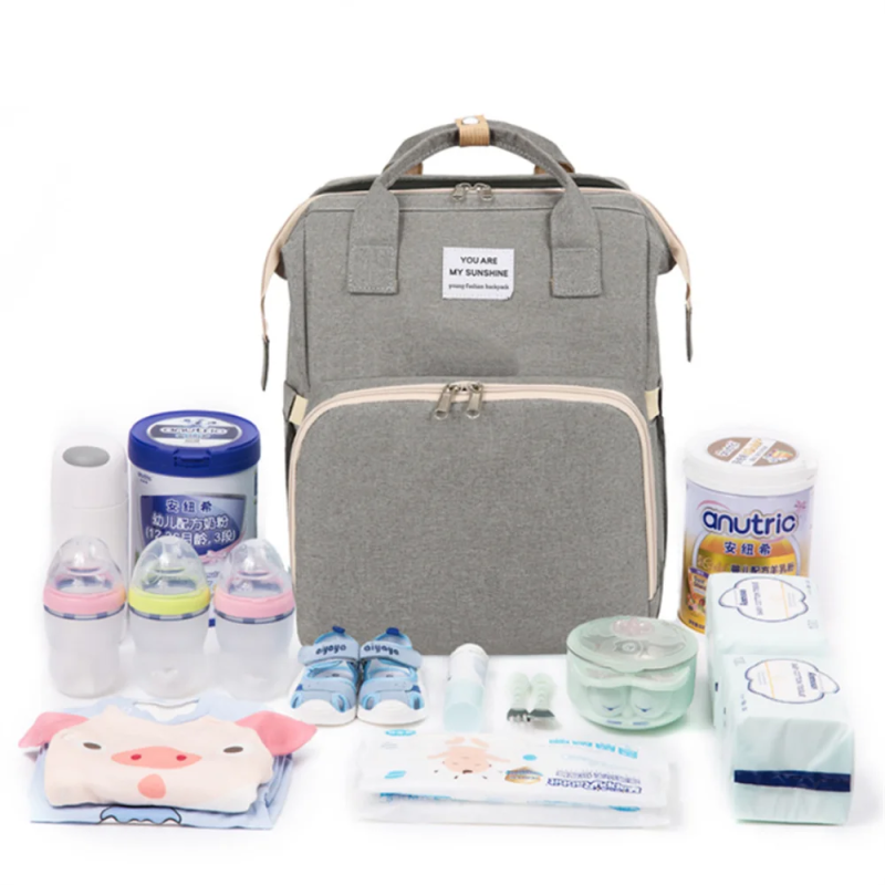This versatile backpack combines a diaper bag with a baby bassinet bed, making it convenient for on-the-go parents to care for their little ones. It includes changing pads and nursing bag compartments.