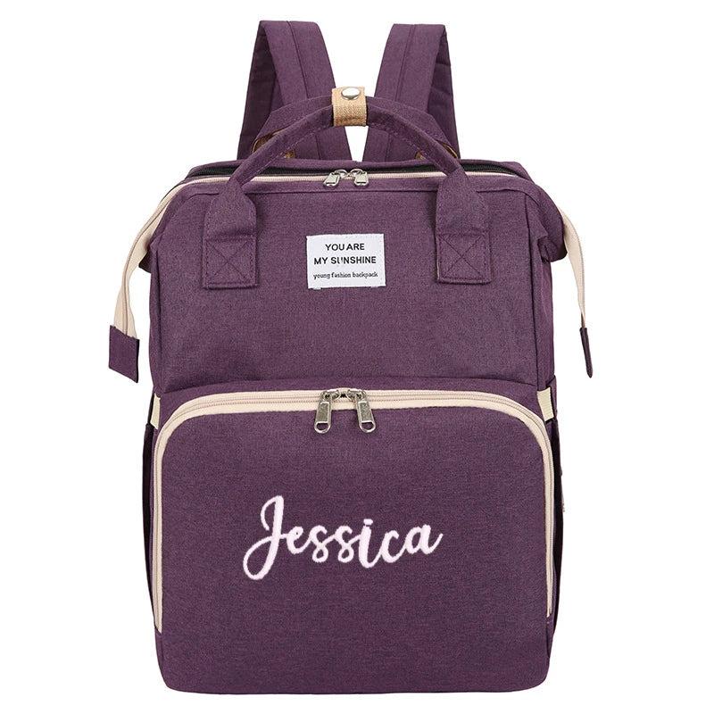 Embroidered Portable Diaper Bag Mummy Backpack with Baby Bassinet Bed