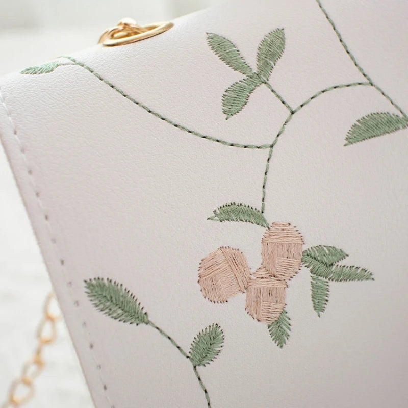 Embroidered Small Square Bag Retro Chain Shoulder Bag