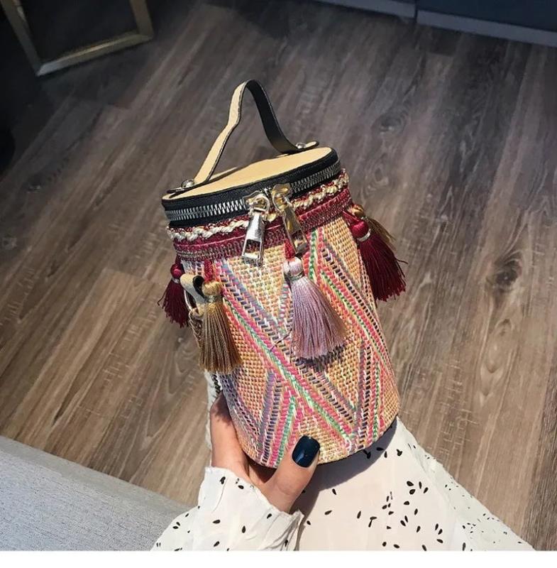Description:This ethnic bag features a portable design with a romantic style. It comes with a chain strap for easy carrying.Features: Portable ethnic bag with romantic design Chain strap for convenient carrying Ideal for everyday use or special occasions Woven texture adds a unique touch Single shoulder messenger bag style This...