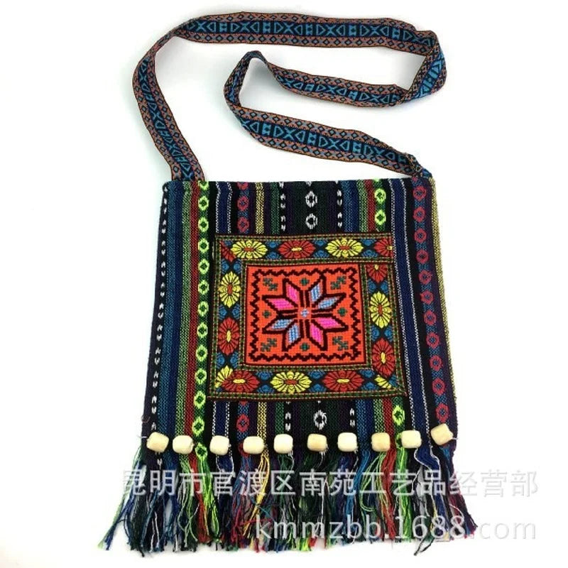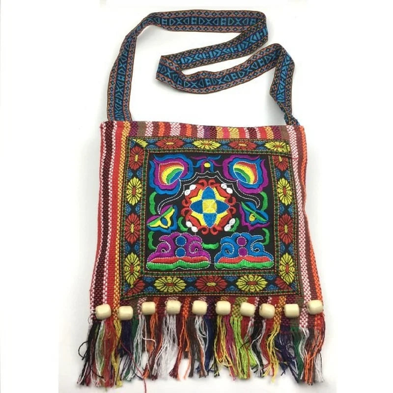 Stay stylish with this vintage-inspired shoulder bag featuring retro embroidery and boho tassel details. Perfect for adding a touch of ethnic flair to your outfit.