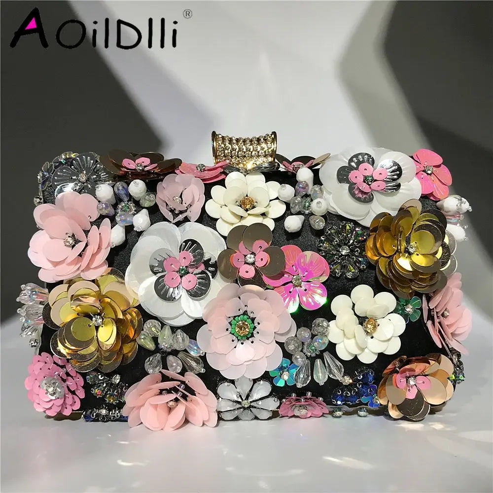 This stunning evening bag features colorful flower beaded design. Perfect accessory for elegant occasions.