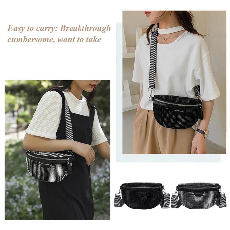 Fanny Belt Pack PU Messenger Bags Diamonds Crossbody Cosmetics Shopper Purse