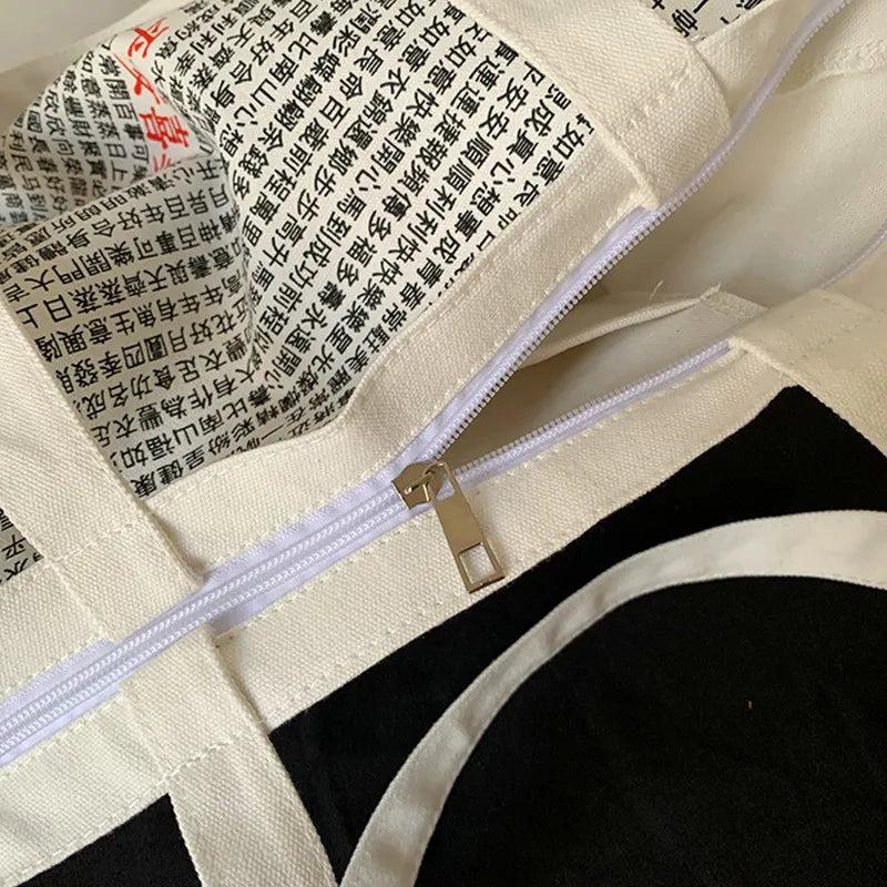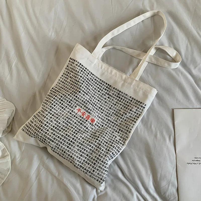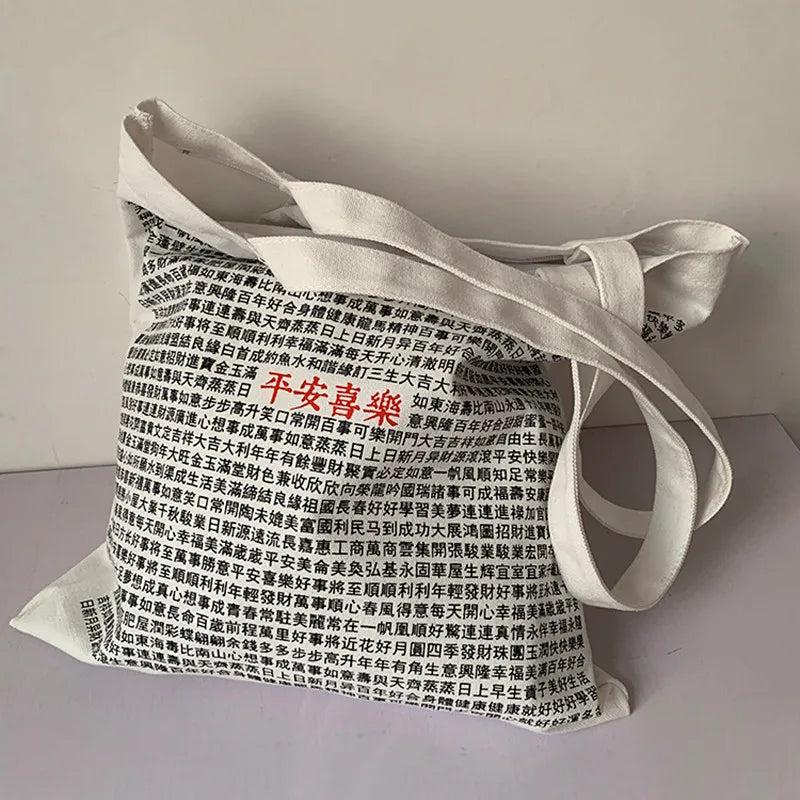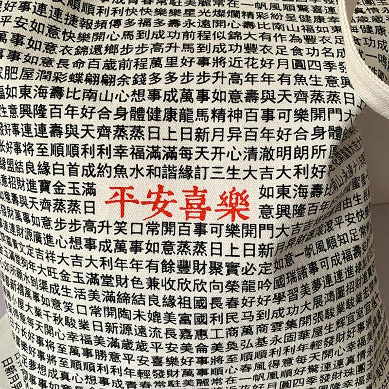 Female Bag Blessing Text Pattern Canvas Shoulder Bag