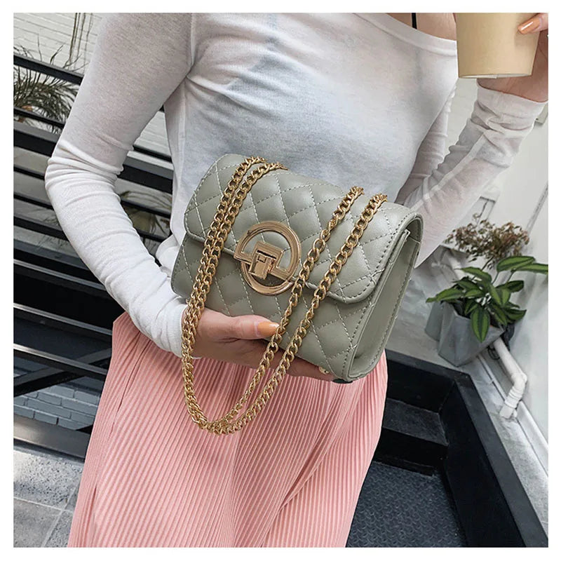 Female Bag Metal Chain Shoulder Strap Rhombus Check Crossbody