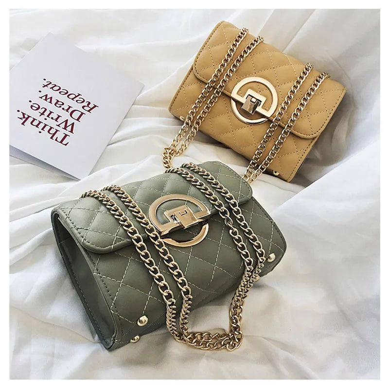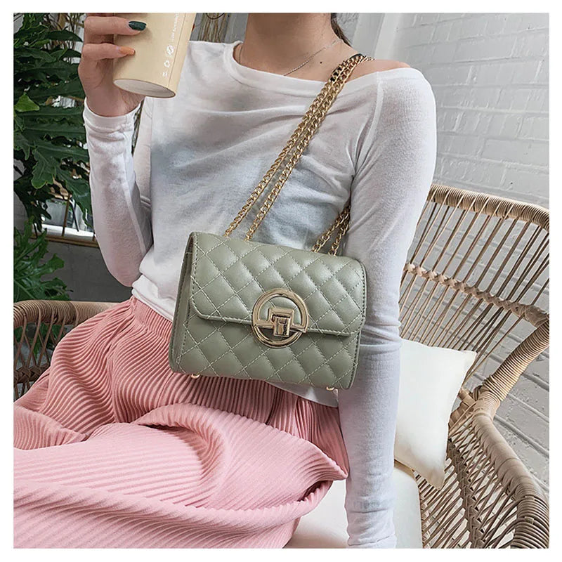 This stylish shoulder bag features a solid rhombus check design with a metal chain shoulder strap. It is the perfect accessory for everyday use.
