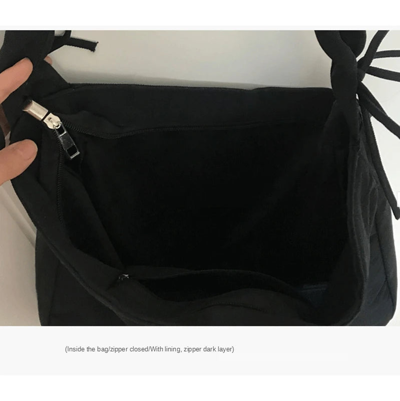 This stylish canvas bag is perfect for female students. It features a wide shoulder strap and a drawstring closure for convenient use.
