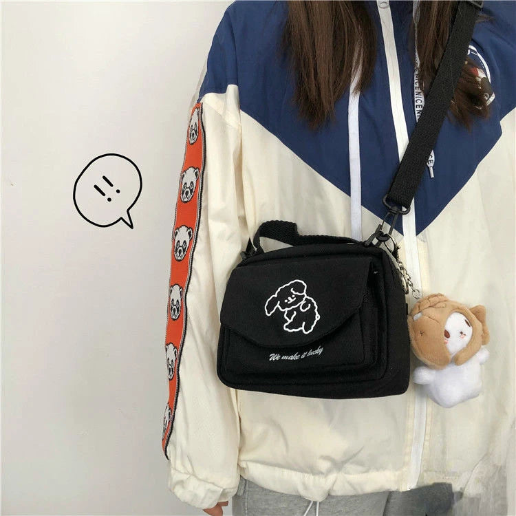 Female Canvas Messenger Bag Envelope Shoulder Crossbody Sweet Cartoon Student Ba
