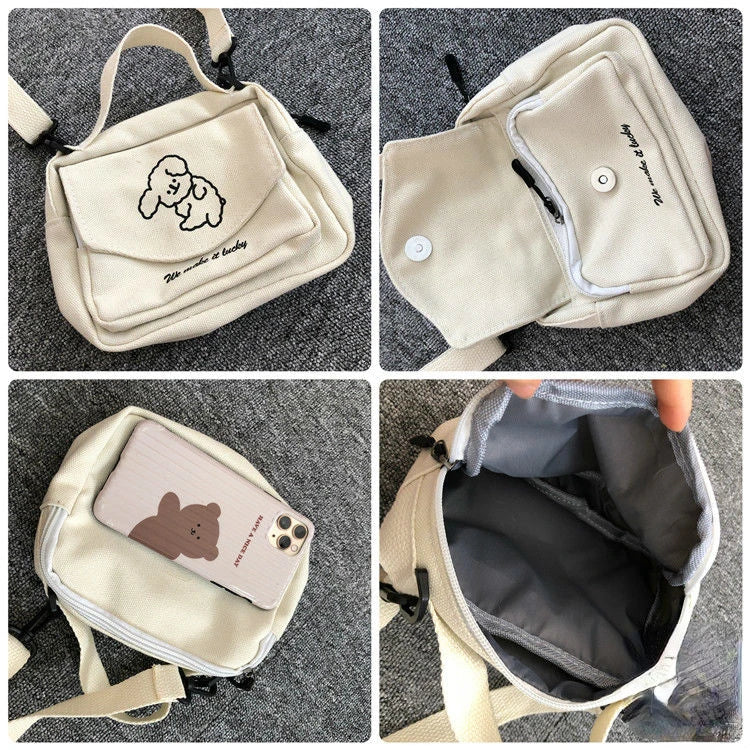 Stay stylish and organized with this adorable female canvas messenger bag featuring a sweet cartoon design. Perfect for students and everyday use!