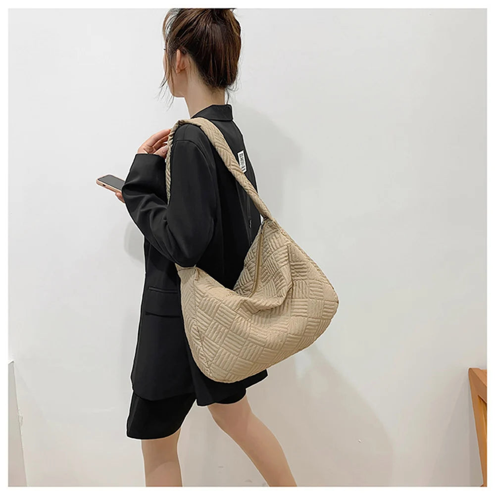 Female Casual Large Capacity Shoulder Tote Bags Cotton Clothing Texture