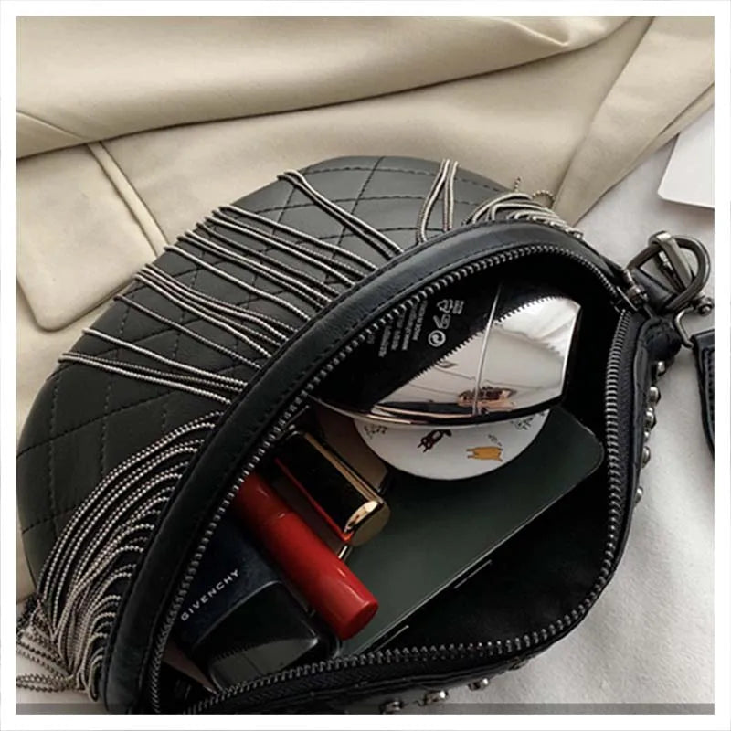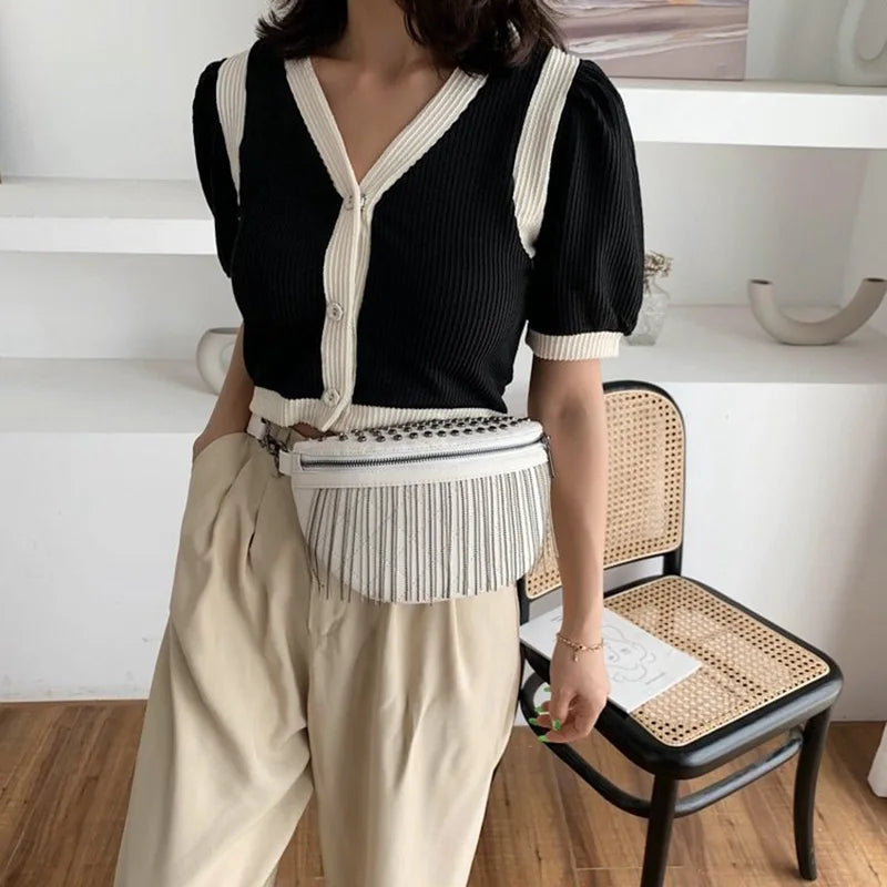 This stylish belt bag is made of high-quality leather and features a tassel and rivet design. Perfect for summer outings, travel, or everyday use.