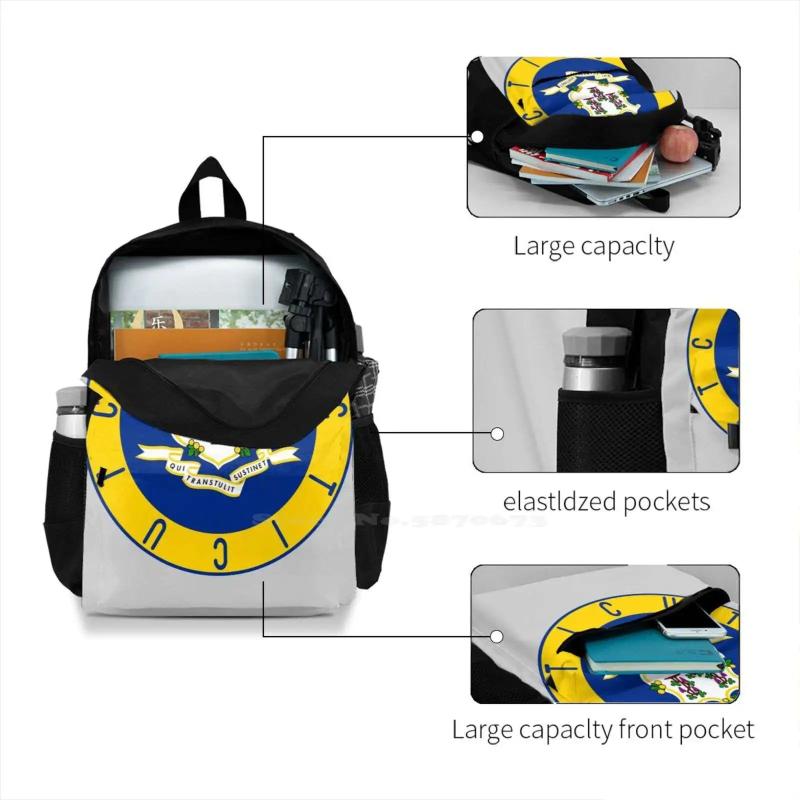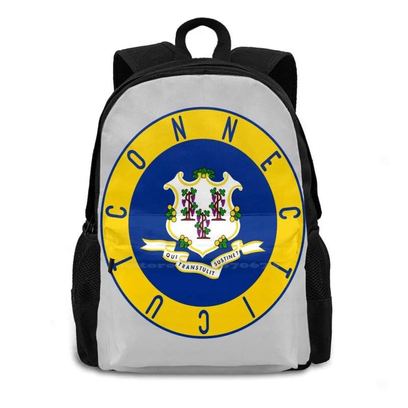 Flag Decal School Bags For Teenage Girls Laptop Travel Bags Flag Flag Ct Conn Ct