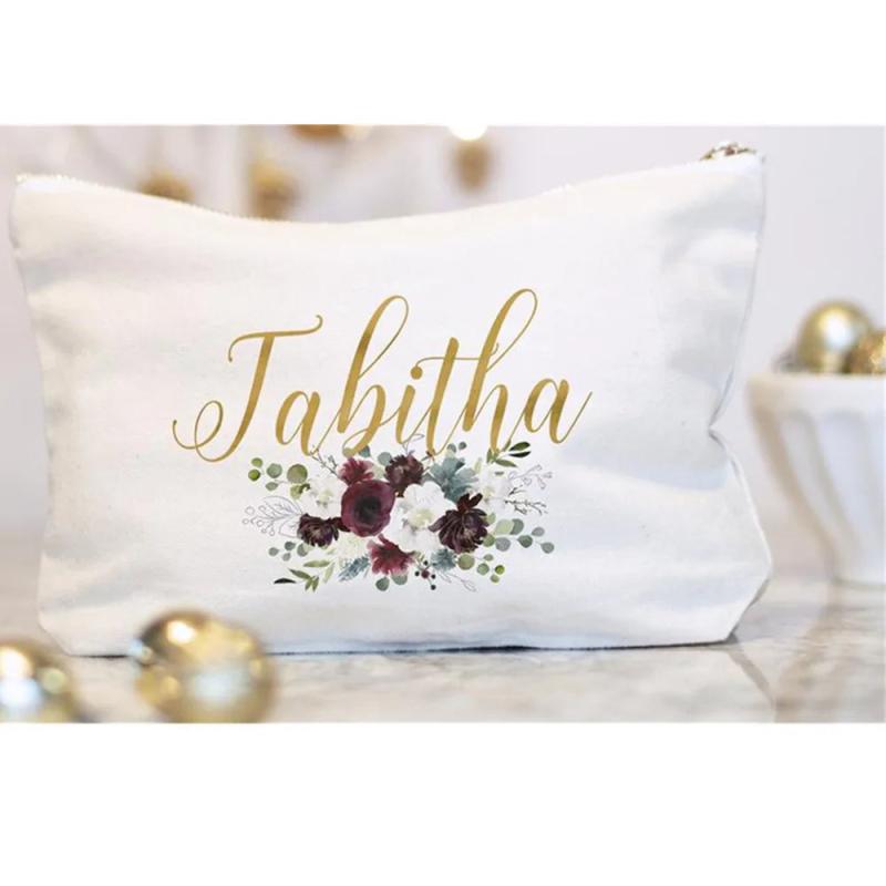 This beautiful floral blush make up bag is the perfect accessory for bridesmaid proposals, bridal showers, and wedding makeup. It also makes a wonderful gift for the mother of the bride.
