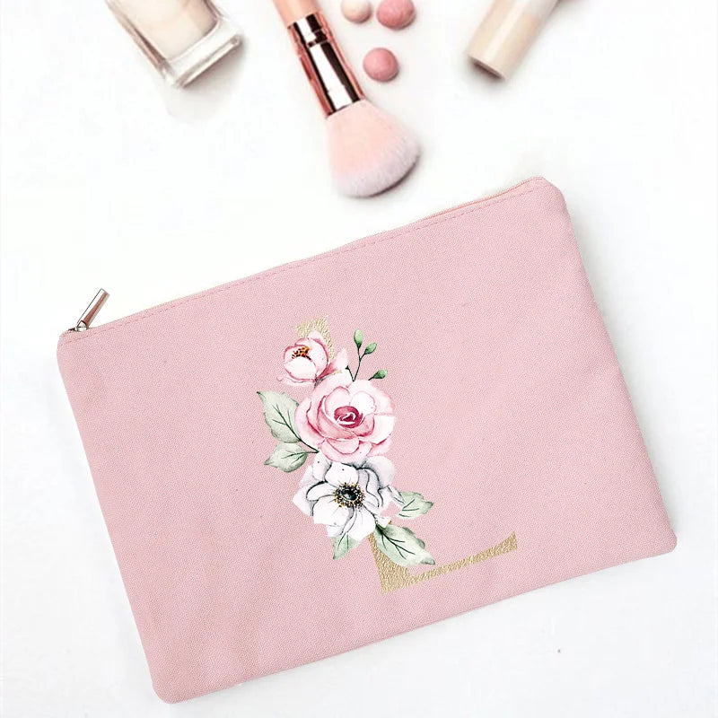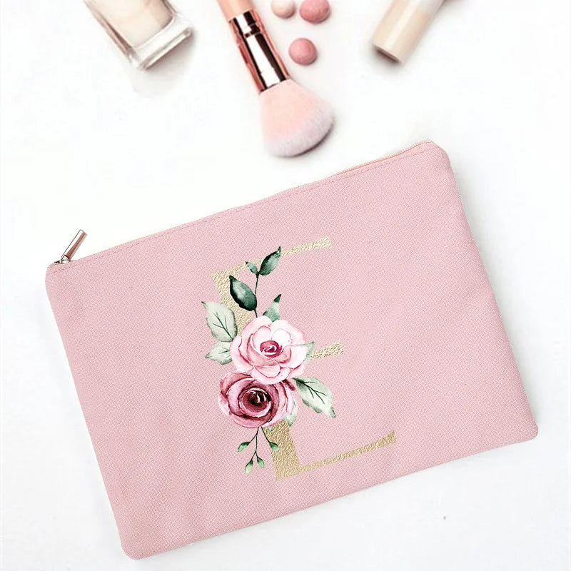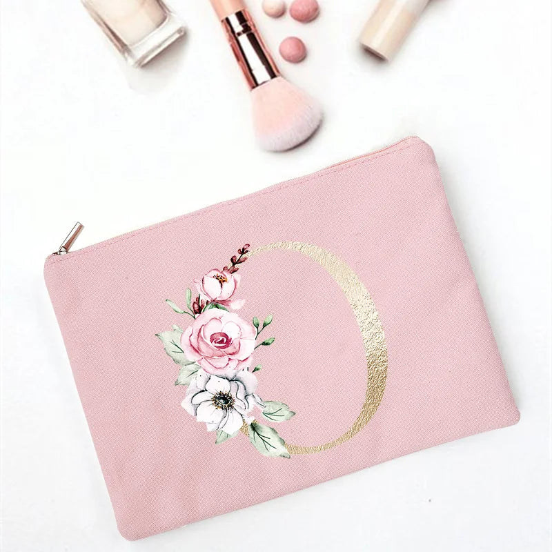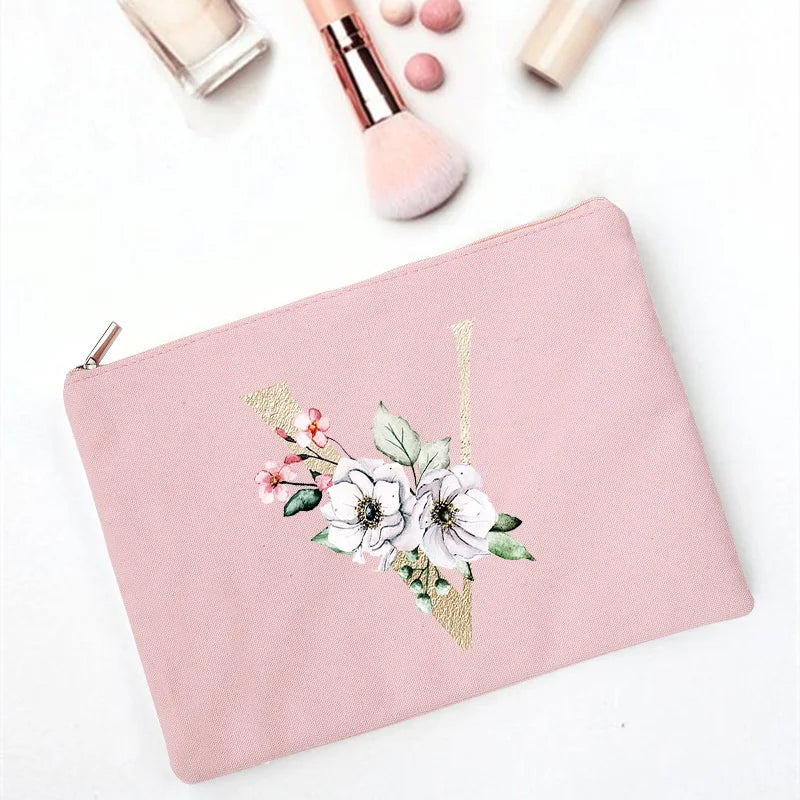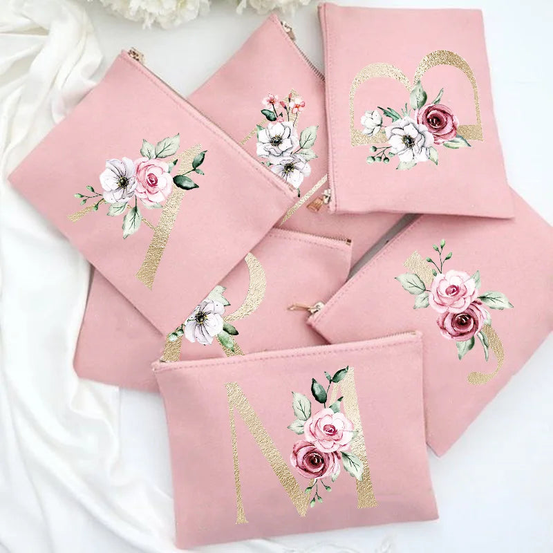 Floral Letter Print Bridesmaid Makeup Bag Cosmetic Bags Bridal Party Make Up Cas
