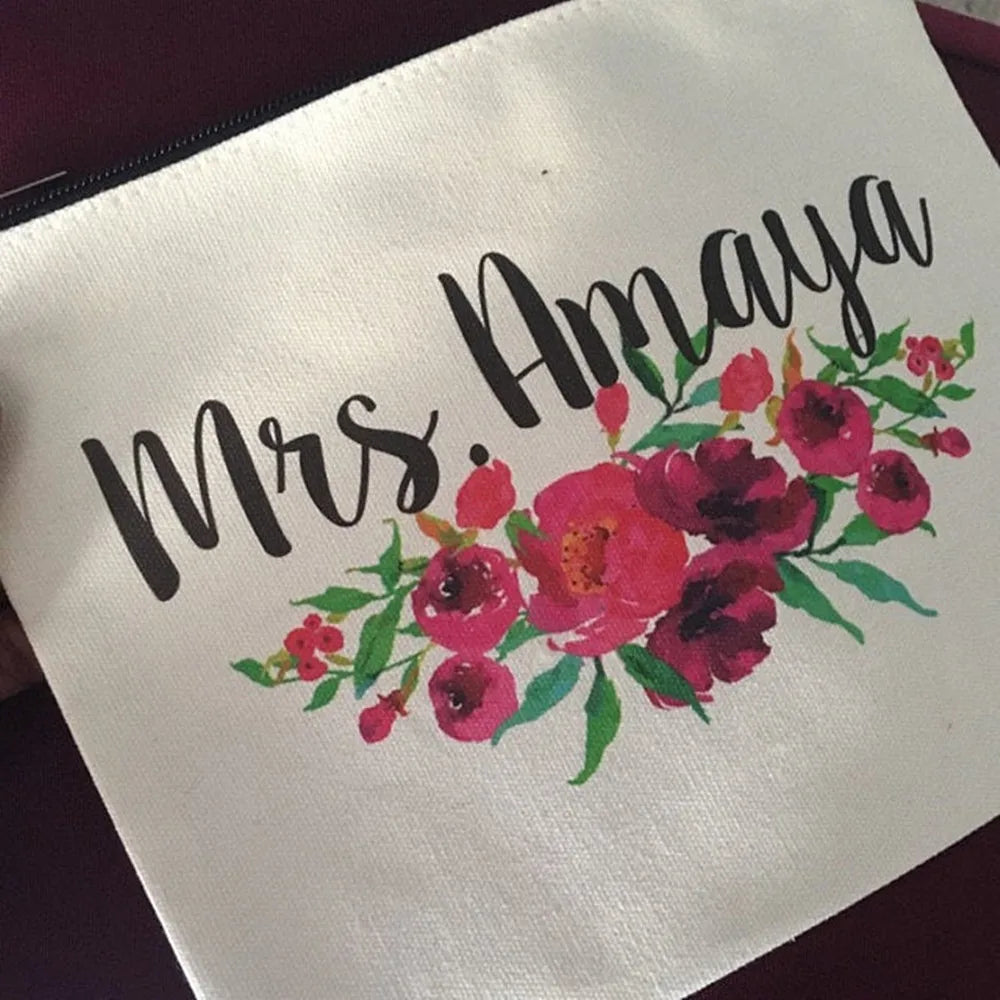 Get your bridesmaids the perfect gift with these personalized floral makeup bags. Ideal for bridesmaid proposals and wedding day essentials.