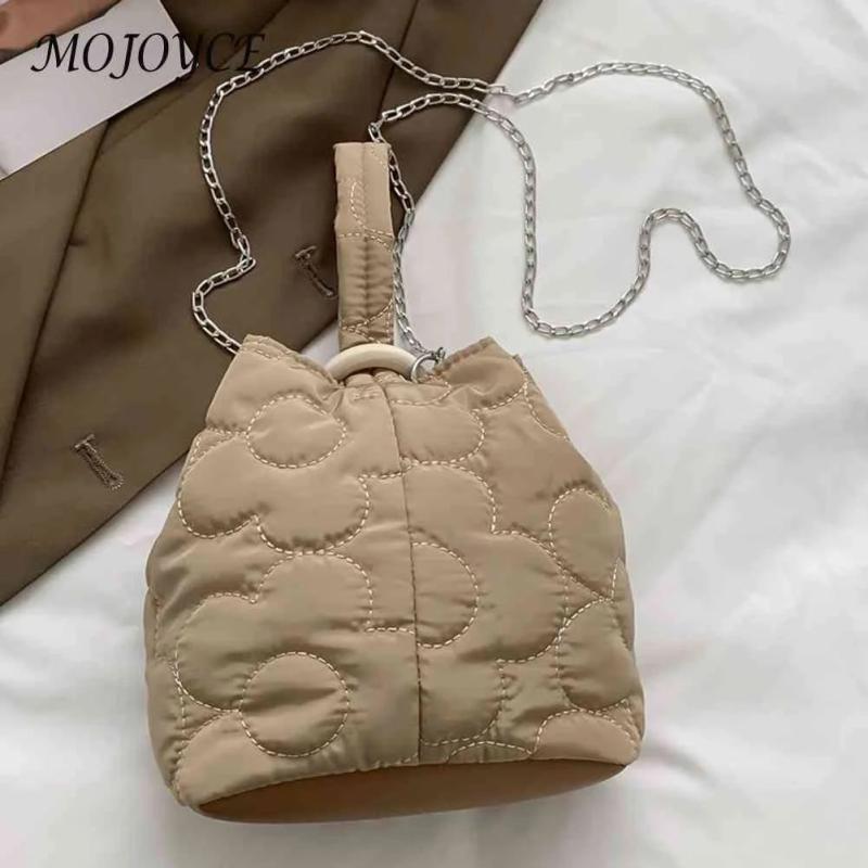 Flower Quilted Tote Bag Chain Bucket Casual Lightweight