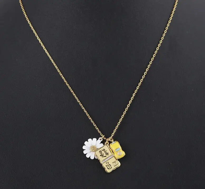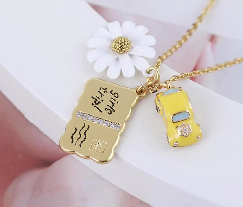 Flowers Car Metal Postcard Multi-Pendant Necklace