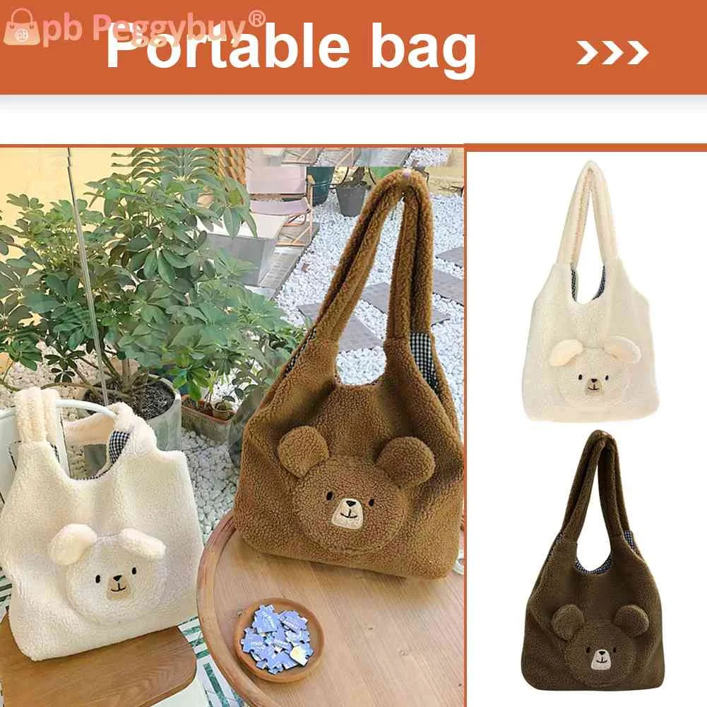 Stay stylish and cozy with this plush ladies tote bag featuring a bear pattern. Perfect for autumn and winter, this casual shopping bag offers ample space for all your essentials. Ideal for holiday parties!