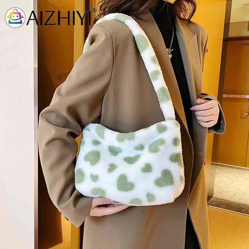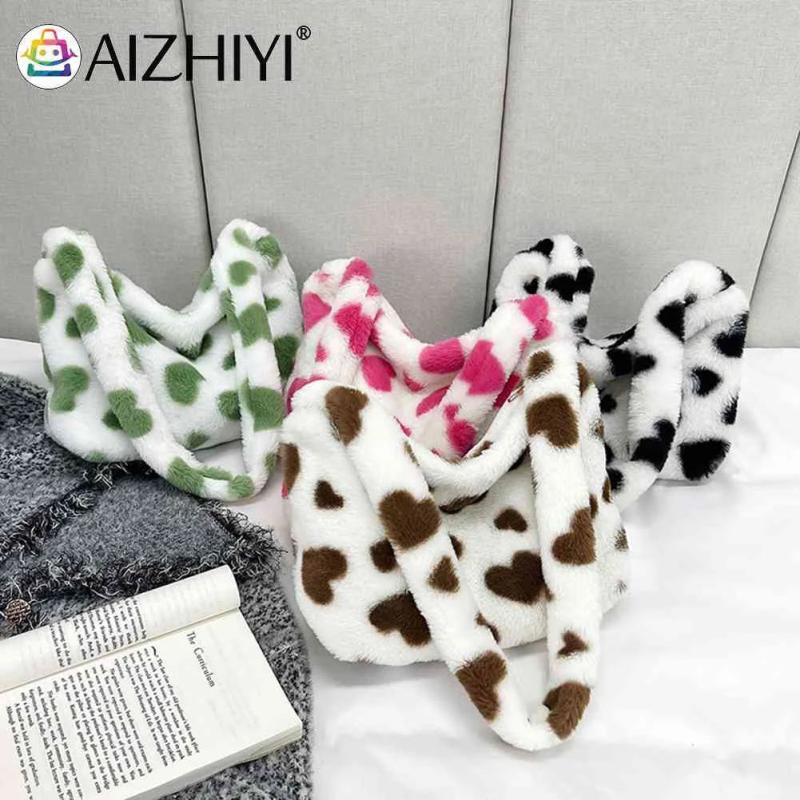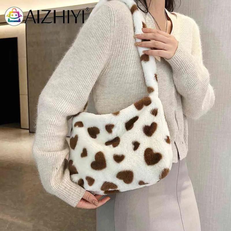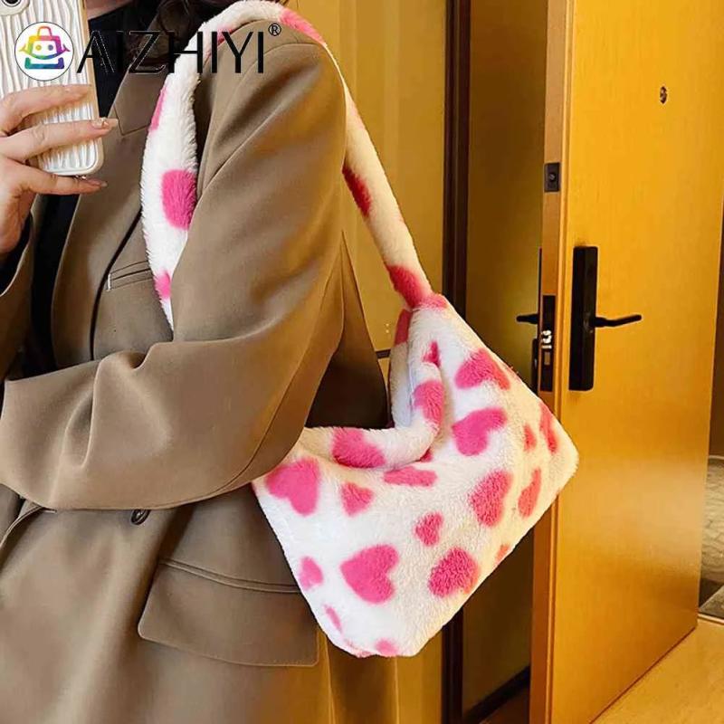 Stay stylish and cozy with this plush shoulder bag featuring a cute love heart print. Perfect for autumn and winter, ideal for holiday parties or casual outings.