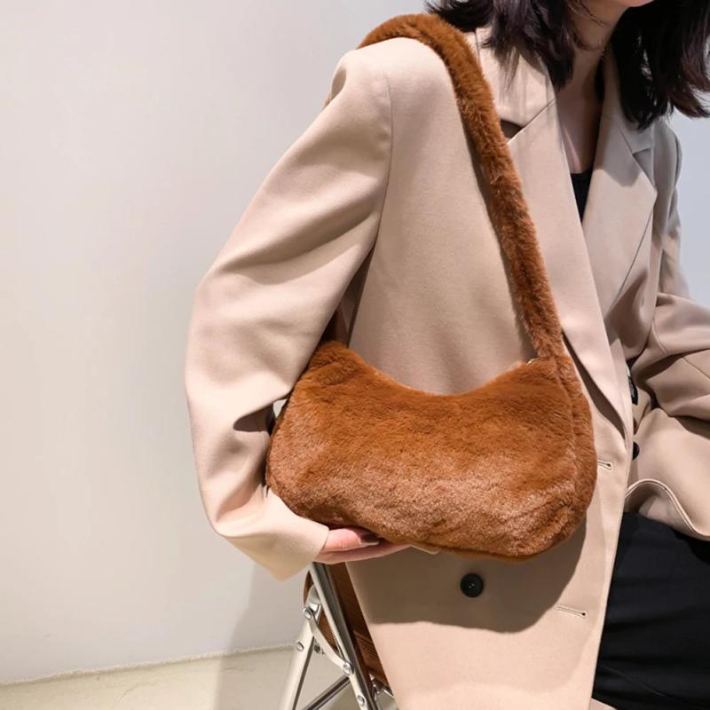 Stay cozy and stylish with this plush fluffy tote bag featuring a love heart print. Perfect for casual outings in the autumn and winter seasons.