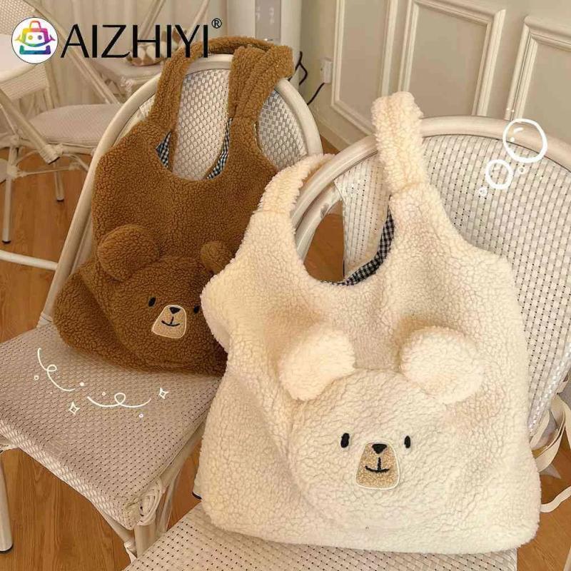 Stay stylish and organized with this plush female underarm bag featuring a bear pattern design. Perfect for autumn and winter, its large capacity makes it ideal for holiday parties and shopping.