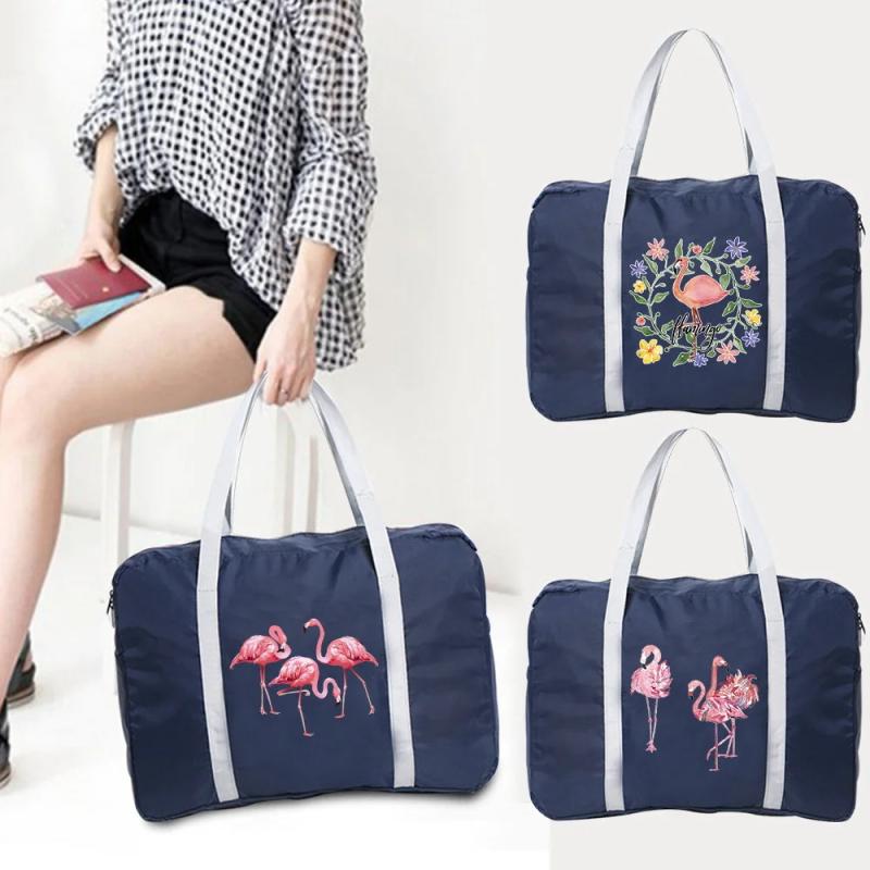 Foldable Duffle Bag Flamingo Print Large Capacity Travel Bag