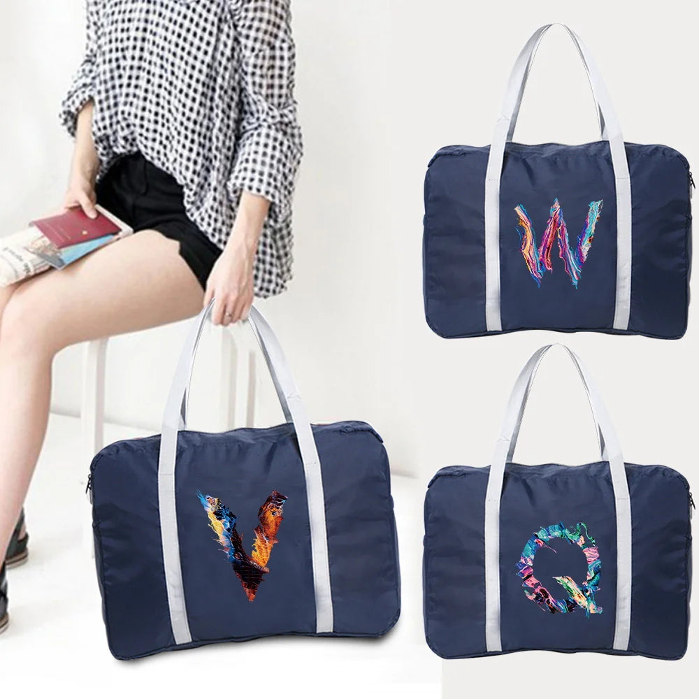 Foldable Duffle Bag Large Capacity Portable Travel Bag Letter Printed