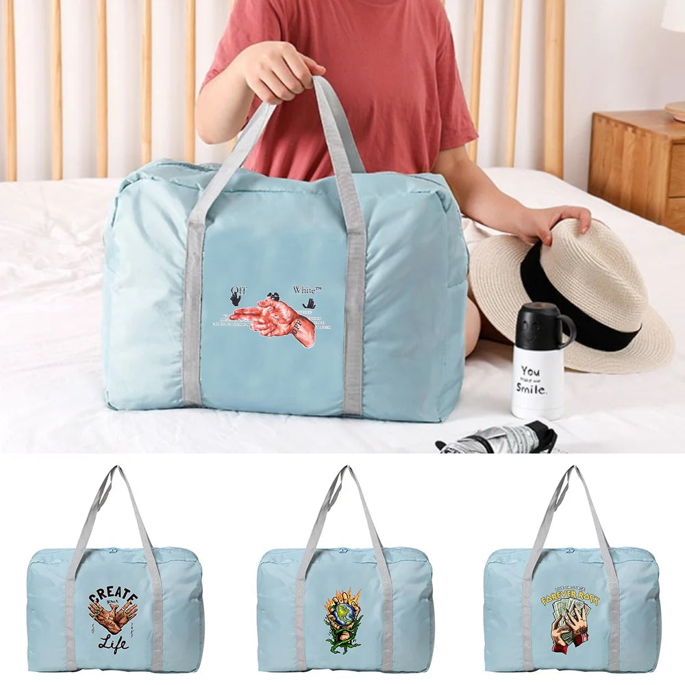 Foldable Duffle Bag Organizers Large Capacity Packing Cubes Hand print Luggage B