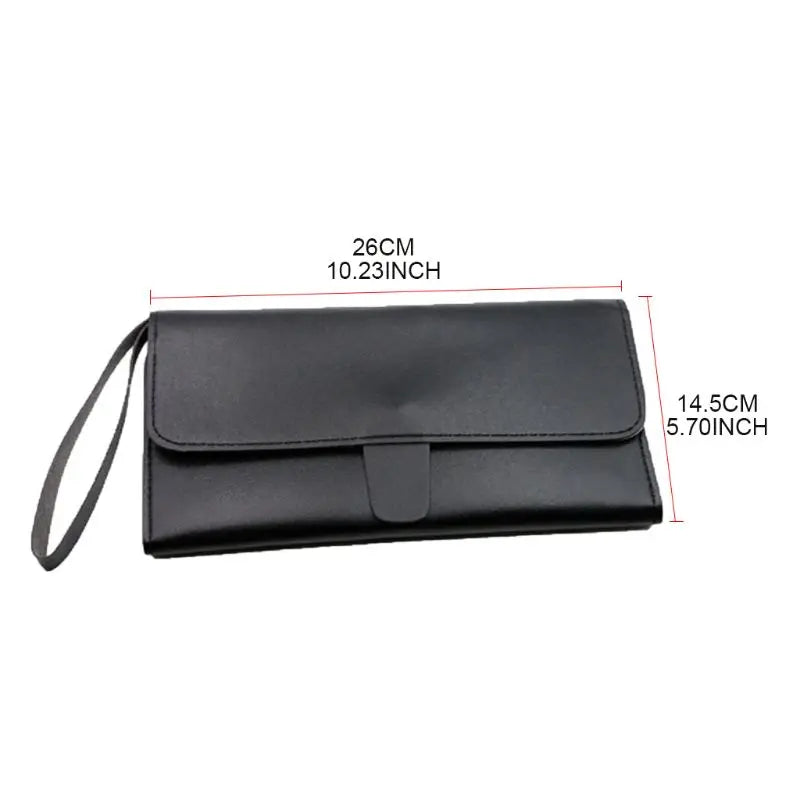 Keep your hairdressing tools organized with this foldable PU leather scissor bag. Perfect for barbers and hairstylists.