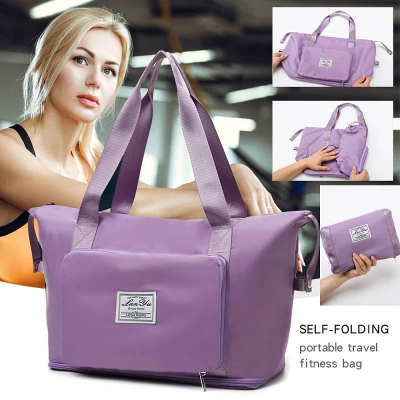 This foldable travel bag is perfect for short-distance trips. It is spacious, convenient, and ideal for fitness enthusiasts or busy moms.