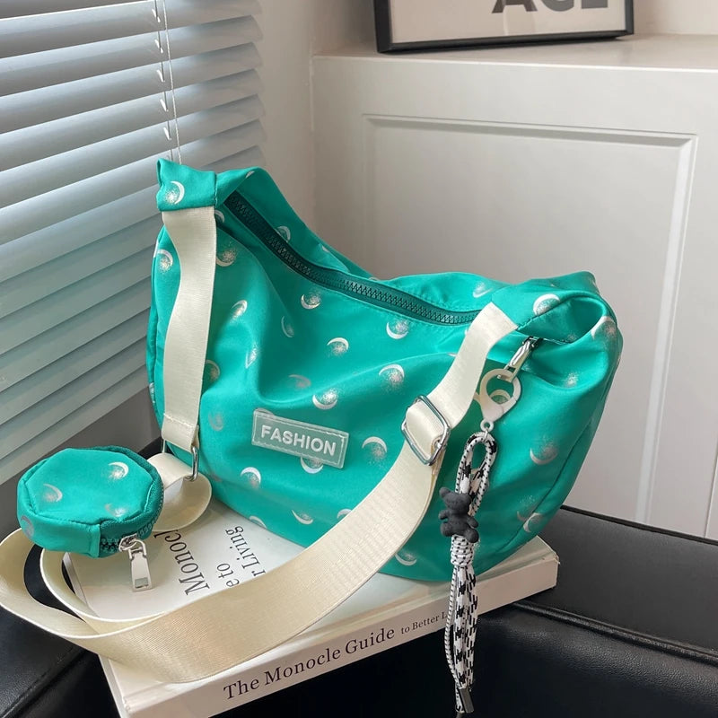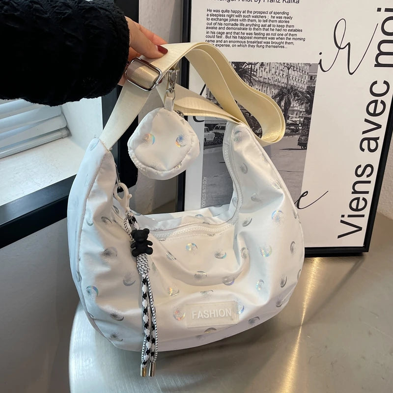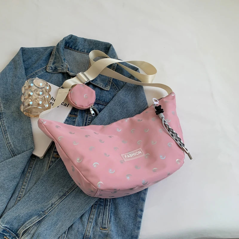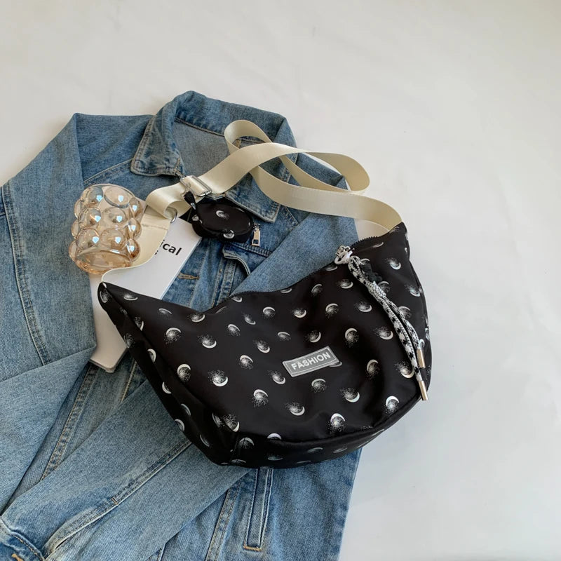 This canvas shoulder bag is perfect for college students, offering a large capacity for all your essentials. The printed design adds a touch of leisure to your style.