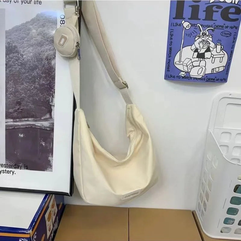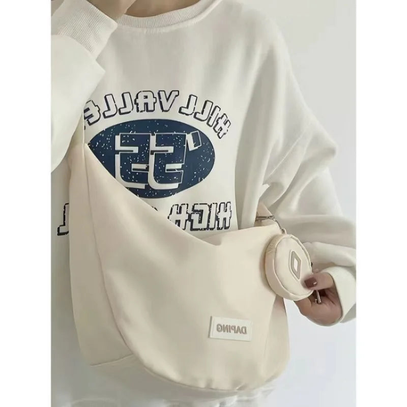Foufurieux Canvas Sling Shoulder Bag Y2K Medium Size Soft Square Crossbody Pouch