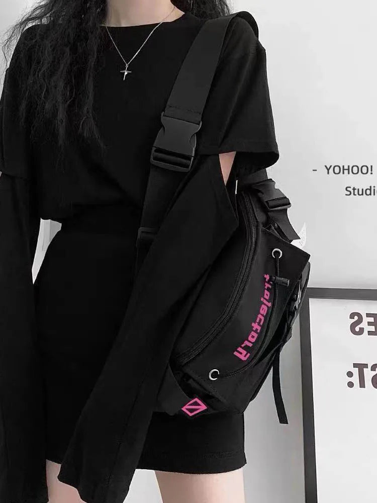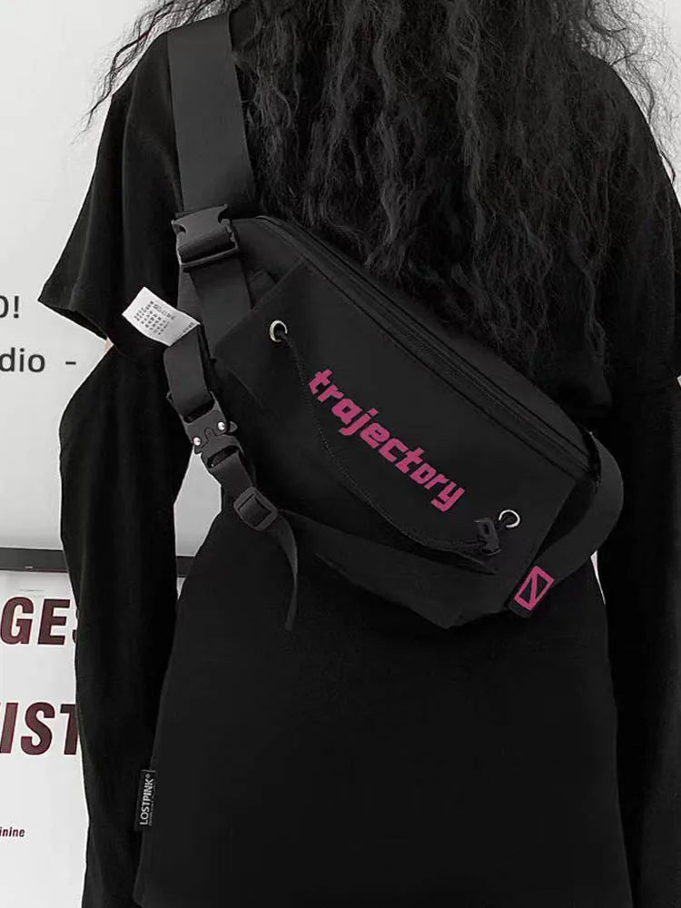 Foufurieux Waist Pack Letter Printed Chestbag Texture One Shoulder Crossb